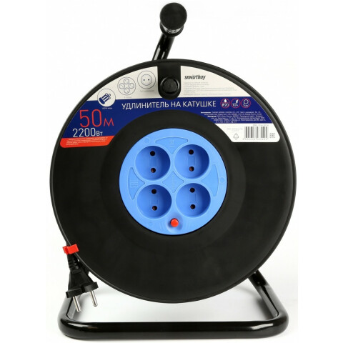 Бренд: SmartBuyудлинитель, 4 розетки, макс. нагрузка 2200 Вт, макс. ток 10 А, длина кабеля: 50 м, чёрный
