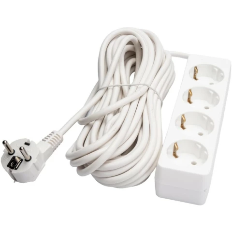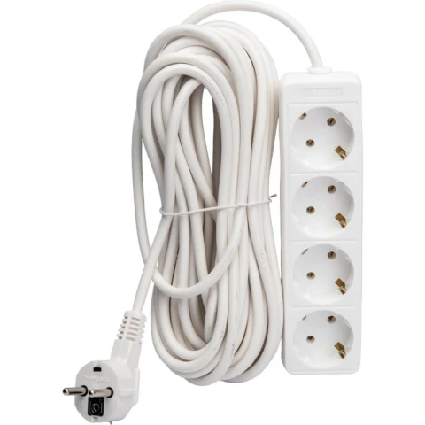 | удлинитель, 4 розетки, макс. нагрузка 2200 Вт, макс. ток 10 А, заземление, длина кабеля: 10 м, белый | 307 смн. |