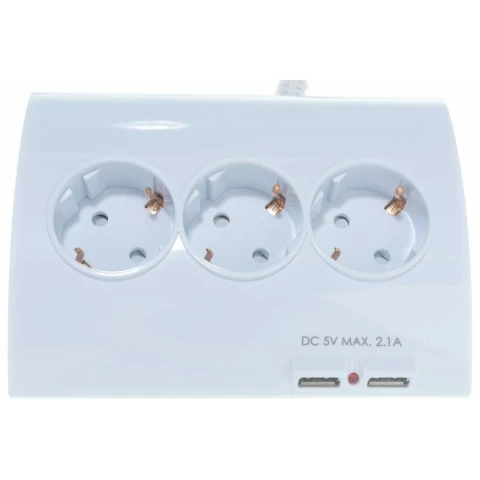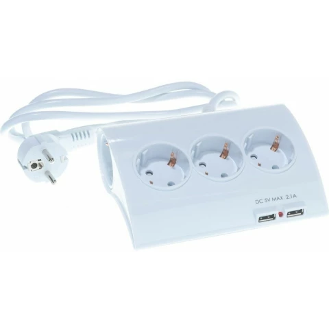 удлинитель, 5 розеток, макс. нагрузка 3500 Вт, макс. ток 16 А, USB, заземление, выключатель на корпусе, шторки на розетке, длина кабеля: 1.5 м, белый