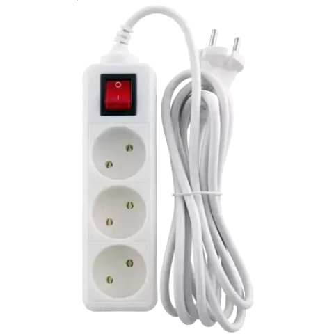 удлинитель, 3 розетки, макс. нагрузка 1300 Вт, макс. ток 10 А, выключатель на корпусе, длина кабеля: 3 м, белый