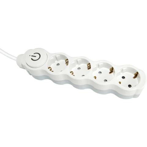удлинитель, 4 розетки, макс. ток 16 А, выключатель на корпусе, заземление, шторки на розетке, длина кабеля: 3 м, белый