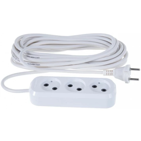 удлинитель, 3 розетки, макс. нагрузка 2300 Вт, макс. ток 10 А, длина кабеля: 10 м, белый