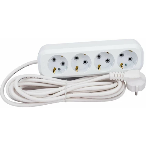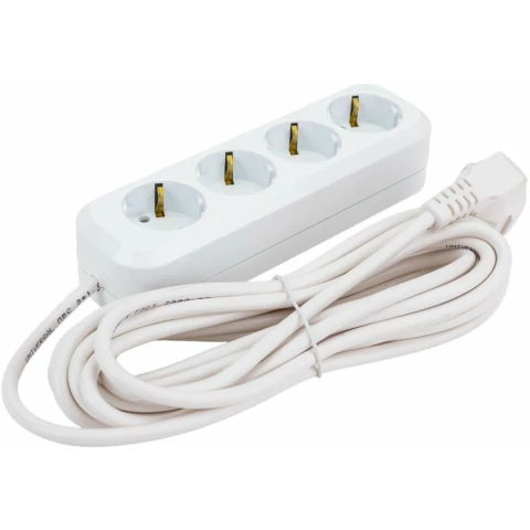 удлинитель, 4 розетки, макс. нагрузка 3000 Вт, макс. ток 13 А, заземление, длина кабеля: 5 м, белый