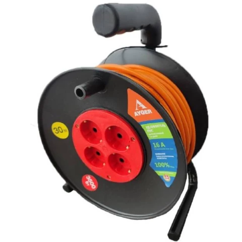удлинитель, 4 розетки, макс. нагрузка 3500 Вт, макс. ток 16 А, заземление, длина кабеля: 30 м, оранжевый