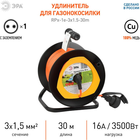 Силовой удлинитель ЭРА RPx-1e-3x1.5-30m