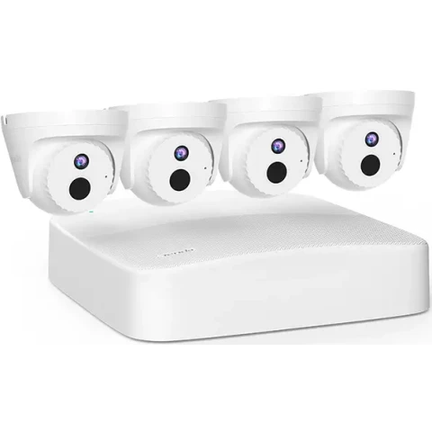 4-канальный PoE HD комплект видеонаблюдения, 1 PoE NVR и 4 камеры с PoE, 4 Мп HD качество изображения, инфракрасное ночное видение, AI обнаружение человека, высокопроизводительное декодирование видео H.265, изоляция поврежденных секторов HDD