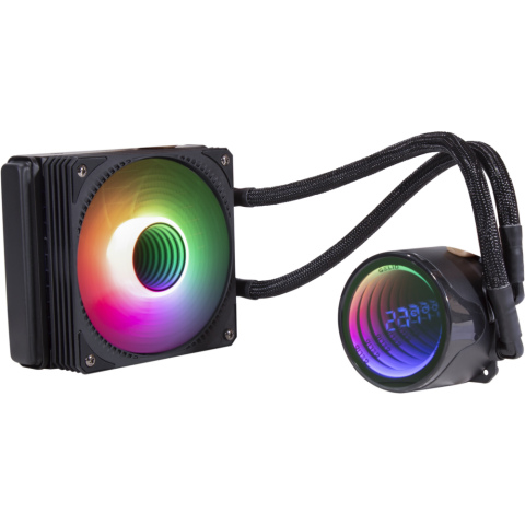для процессора, СЖО, Socket 115x/1200, 1356, 1366, 1700, 2011, 2011-3, 2066, AM2, AM2+, AM3, AM3+, AM4, AM5, 1x120 мм, 750-1800 об/мин, TDP 150 Вт, ЖК дисплей, разноцветная подсветка