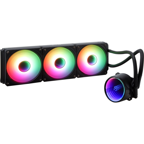 для процессора, СЖО, Socket 115x/1200, 1356, 1366, 1700, 2011, 2011-3, 2066, AM2, AM2+, AM3, AM3+, AM4, AM5, 3x120 мм, 750-1800 об/мин, TDP 300 Вт, ЖК дисплей, разноцветная подсветка