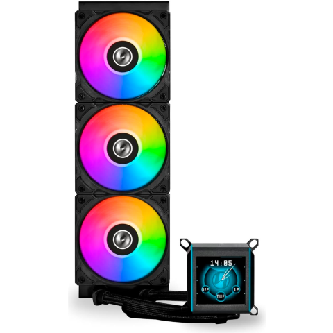 для процессора, СЖО, Socket 115x/1200, 1700, 1851, AM4, AM5, 3x120 мм, 300-2450 об/мин, ЖК дисплей, разноцветная подсветка