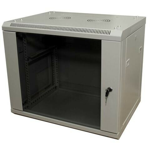 шкаф настенный, высота 9U, 600 мм x 450 мм, стеклянная передняя дверь, нагрузка до 60 кг, замок, IP20