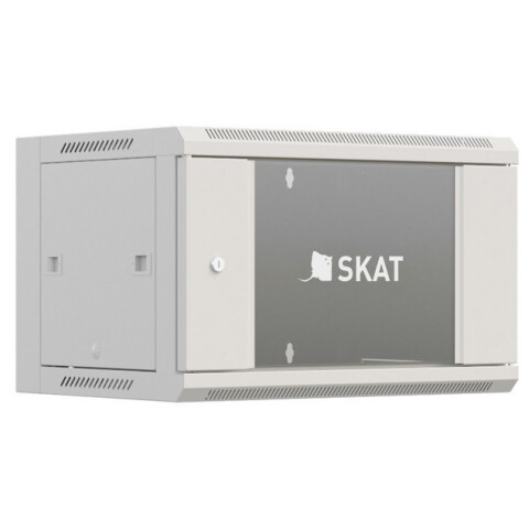 шкаф настенный, стандарт 19", высота 6U, 570 мм x 600 мм, стеклянная передняя дверь, замок