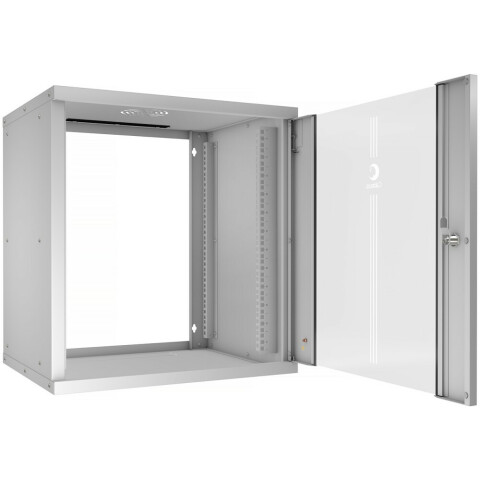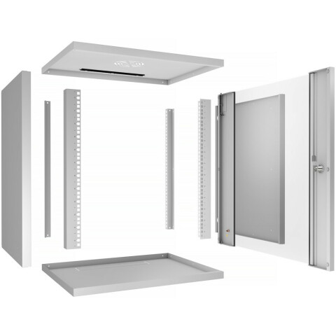 шкаф настенный, стандарт 19", высота 12U, 550 мм x 450 мм, стеклянная передняя дверь, нагрузка до 30 кг, замок, IP20