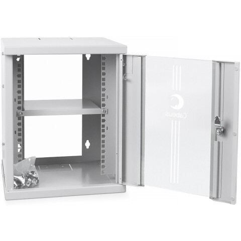 шкаф настенный, стандарт 10", высота 8U, 326 мм x 300 мм, стеклянная передняя дверь, нагрузка до 20 кг, замок, IP20