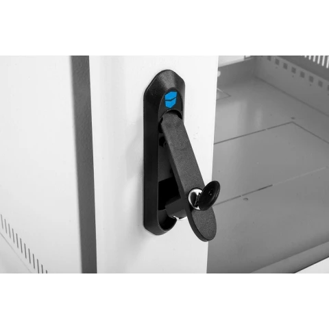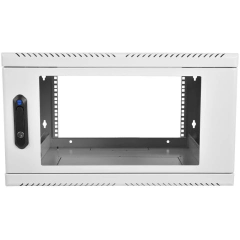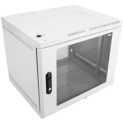 шкаф настенный, стандарт 19", высота 12U, 600 мм x 300 мм, стеклянная передняя дверь, нагрузка до 200 кг, замок