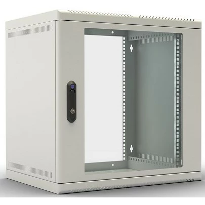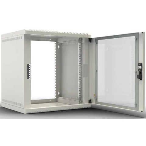шкаф настенный, стандарт 19", высота 12U, 600 мм x 480 мм, стеклянная передняя дверь, нагрузка до 50 кг, замок