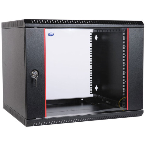шкаф настенный, стандарт 19", высота 15U, 600 мм x 350 мм, стеклянная передняя дверь, нагрузка до 85 кг, замок