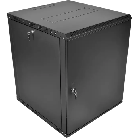 шкаф настенный, стандарт 19", высота 15U, 600 мм x 350 мм, металлическая передняя дверь, нагрузка до 85 кг, замок