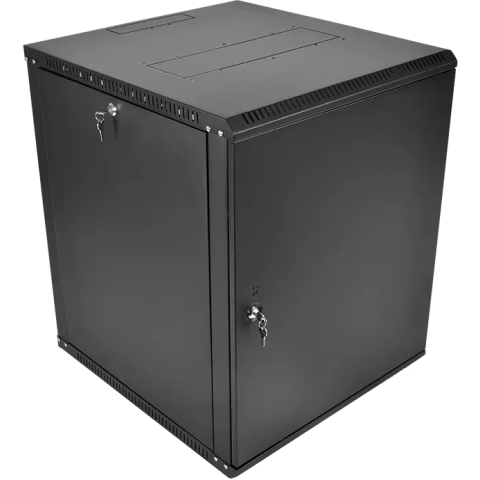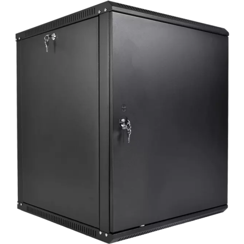 шкаф настенный, стандарт 19", высота 18U, 600 мм x 520 мм, металлическая передняя дверь, нагрузка до 75 кг, замок