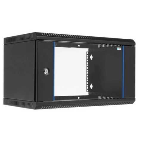 шкаф настенный, стандарт 19", высота 6U, 600 мм x 350 мм, стеклянная передняя дверь, нагрузка до 85 кг, замок