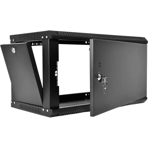 шкаф настенный, стандарт 19", высота 6U, 600 мм x 350 мм, металлическая передняя дверь, нагрузка до 85 кг, замок
