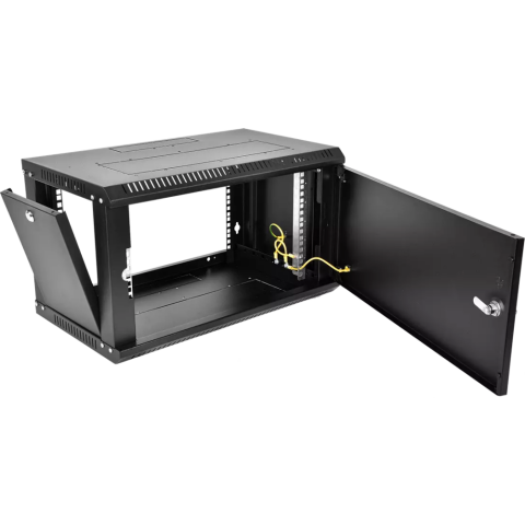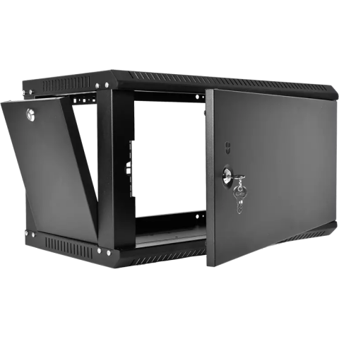 шкаф настенный, стандарт 19", высота 6U, 600 мм x 520 мм, металлическая передняя дверь, нагрузка до 75 кг, замок