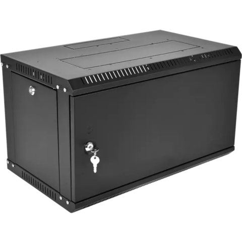 шкаф настенный, стандарт 19", высота 9U, 600 мм x 520 мм, металлическая передняя дверь, нагрузка до 75 кг, замок