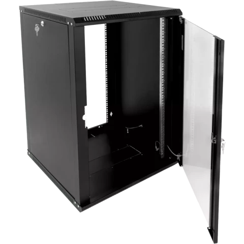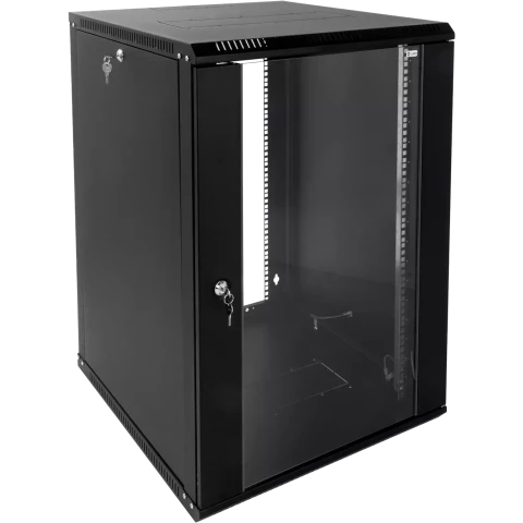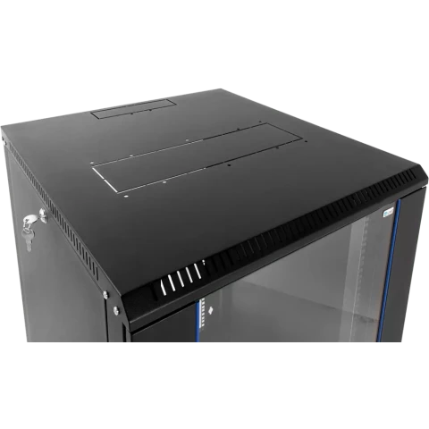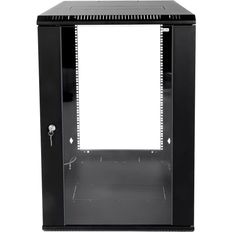 шкаф настенный, стандарт 19", высота 12U, 600 мм x 520 мм, стеклянная передняя дверь, нагрузка до 75 кг, замок