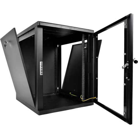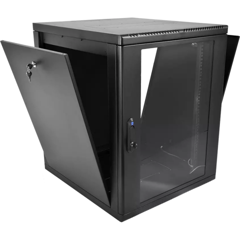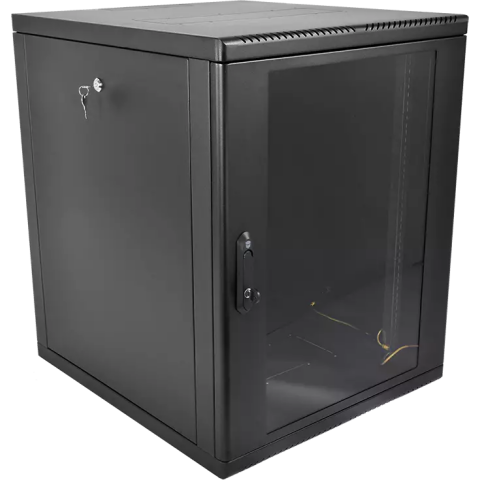 шкаф настенный, стандарт 19", высота 15U, 600 мм x 530 мм, стеклянная передняя дверь, нагрузка до 130 кг, замок