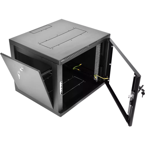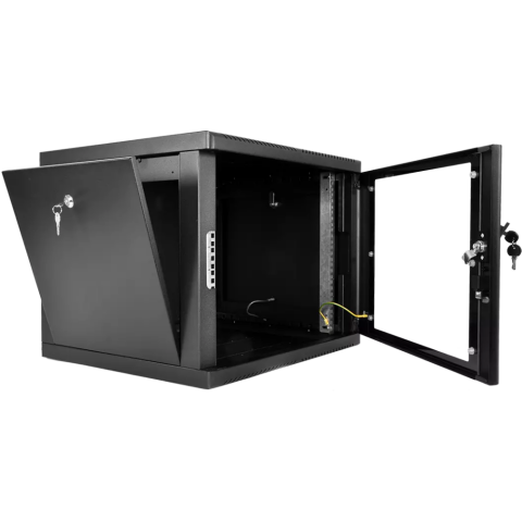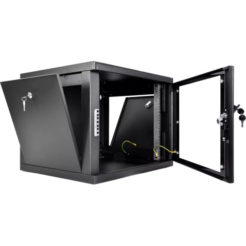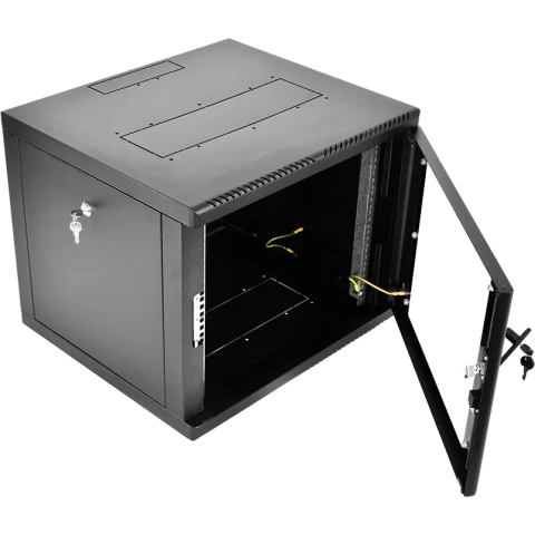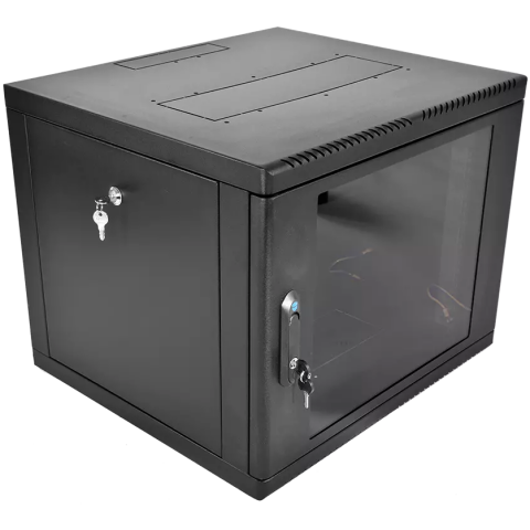 шкаф настенный, стандарт 19", высота 9U, 600 мм x 530 мм, стеклянная передняя дверь, нагрузка до 130 кг, замок