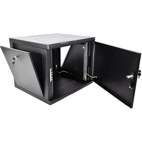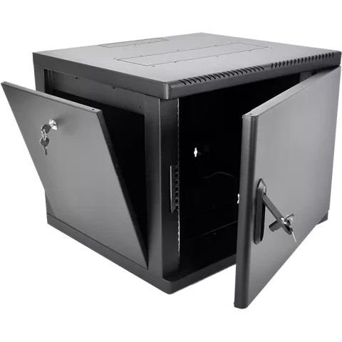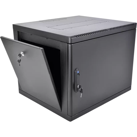 шкаф настенный, стандарт 19", высота 9U, 600 мм x 660 мм, металлическая передняя дверь, нагрузка до 120 кг, замок