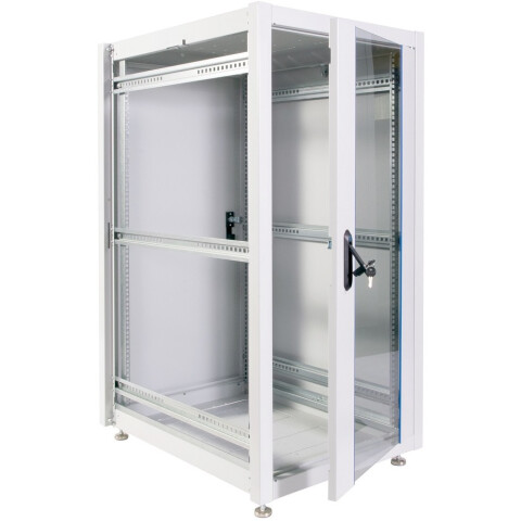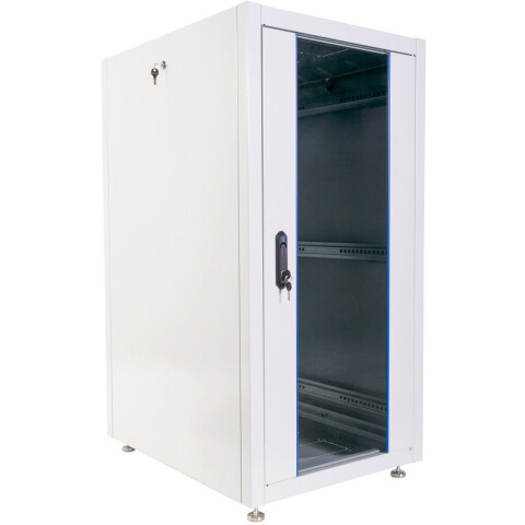 шкаф напольный, стандарт 19", высота 24U, 600 мм x 1000 мм, стеклянная передняя дверь, нагрузка до 540 кг, замок, IP20