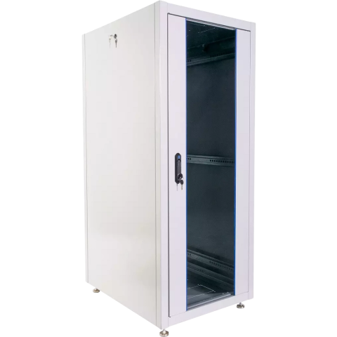 шкаф напольный, стандарт 19", высота 30U, 600 мм x 600 мм, стеклянная передняя дверь, нагрузка до 620 кг, замок, IP20