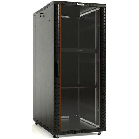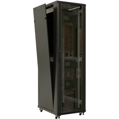 шкаф напольный, стандарт 19", высота 27U, 600 мм x 600 мм, стеклянная передняя дверь, нагрузка до 800 кг, замок, IP20