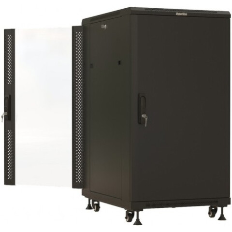 шкаф напольный, стандарт 19", высота 18U, 600 мм x 600 мм, стеклянная передняя дверь, нагрузка до 1000 кг, замок, IP20