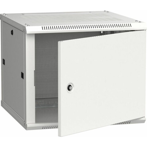 шкаф настенный, стандарт 19", высота 6U, 600 мм x 600 мм, металлическая передняя дверь, нагрузка до 90 кг, замок, IP20