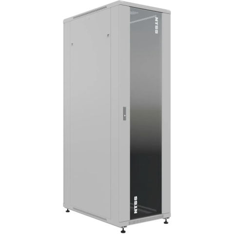 шкаф напольный, стандарт 19", высота 22U, 600 мм x 1000 мм, стеклянная передняя дверь, нагрузка до 900 кг, замок, IP20