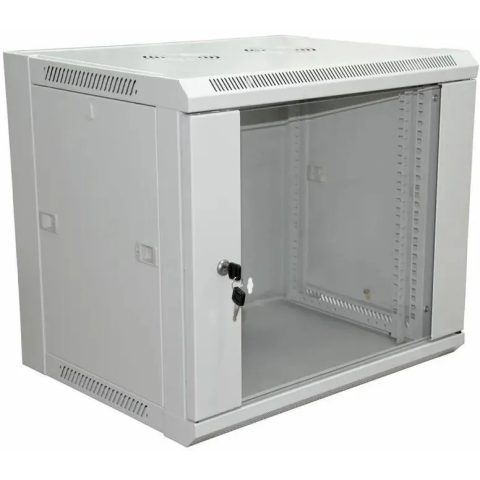 шкаф настенный, стандарт 19", высота 18U, 600 мм x 600 мм, стеклянная передняя дверь, нагрузка до 90 кг, замок, IP20