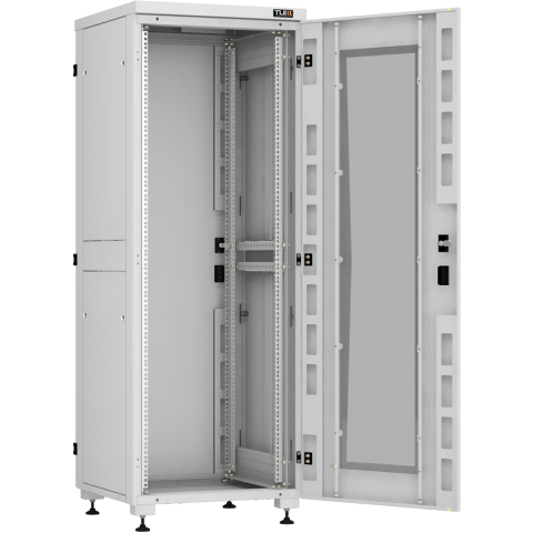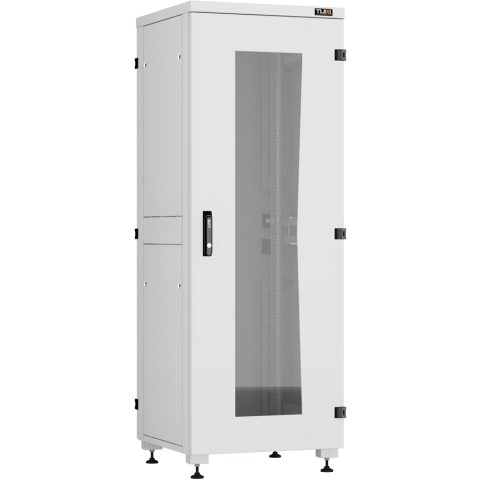 шкаф напольный, стандарт 19", высота 33U, 600 мм x 600 мм, стеклянная передняя дверь, нагрузка до 800 кг, замок, IP20