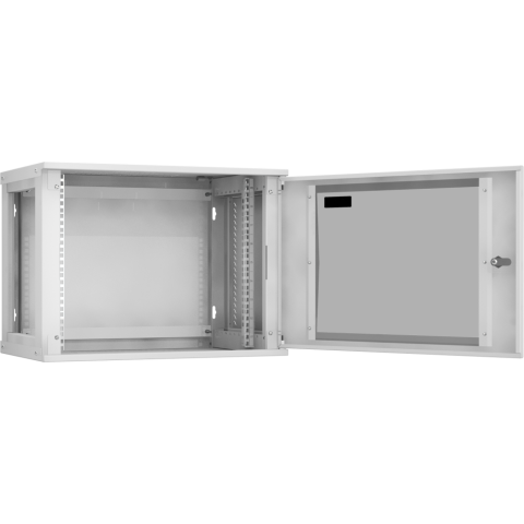 шкаф настенный, стандарт 19", высота 9U, 600 мм x 350 мм, стеклянная передняя дверь, нагрузка до 40 кг, замок, IP20