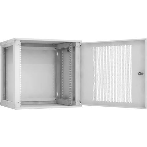 шкаф настенный, стандарт 19", высота 12U, 600 мм x 450 мм, металлическая передняя дверь, нагрузка до 40 кг, замок, IP20
