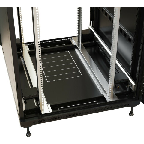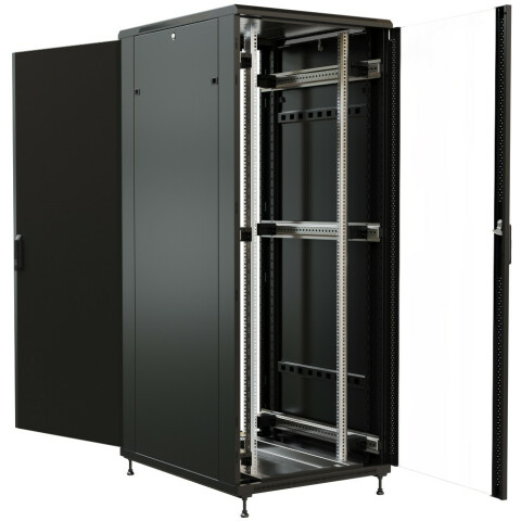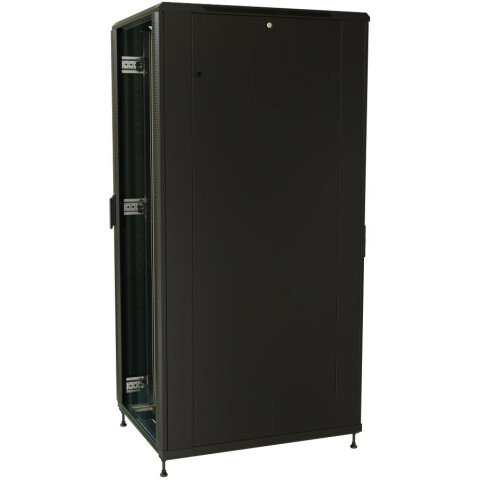 шкаф напольный, стандарт 19", высота 32U, 800 мм x 1000 мм, стеклянная передняя дверь, нагрузка до 800 кг, замок, IP20