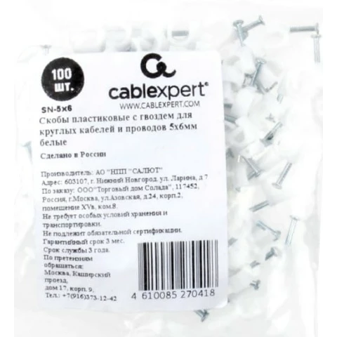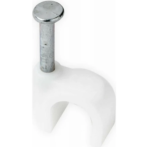 скобы пластиковые с гвоздем для круглых кабелей и проводов 5x6 мм, 100 шт.