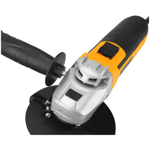 угловая шлифмашина, мощность 1000 Вт, частота вращения диска 11000 об/мин, диаметр диска 125 мм, питание от сети, дополнительная рукоятка