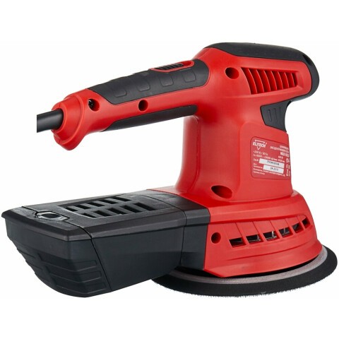эксцентриковая шлифмашина, мощность 460 Вт, частота вращения диска 13000 об/мин, частота колебания платформы 26000 кол/мин, диаметр диска 150 мм, питание от сети, дополнительная рукоятка