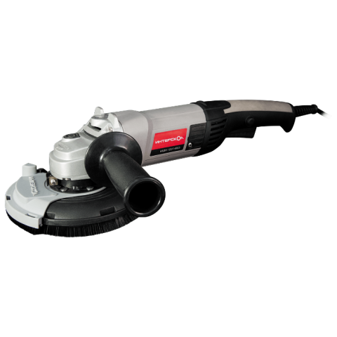 угловая шлифмашина, мощность 1400 Вт, частота вращения диска 9500 об/мин, диаметр диска 125 мм, питание от сети, дополнительная рукоятка