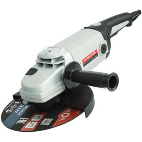 угловая шлифмашина, мощность 2600 Вт, частота вращения диска 6500 об/мин, диаметр диска 230 мм, питание от сети, дополнительная рукоятка