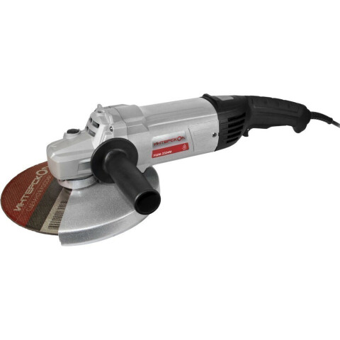 угловая шлифмашина, мощность 2300 Вт, частота вращения диска 6500 об/мин, диаметр диска 230 мм, питание от сети, дополнительная рукоятка