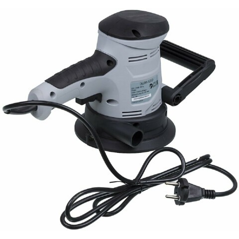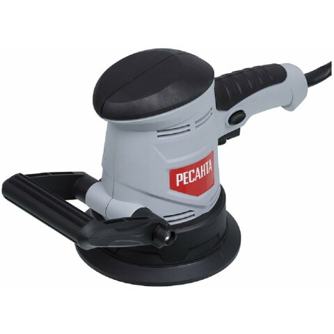 эксцентриковая шлифмашина, мощность 450 Вт, частота вращения диска 13000 об/мин, диаметр диска 125 мм, питание от сети, дополнительная рукоятка
