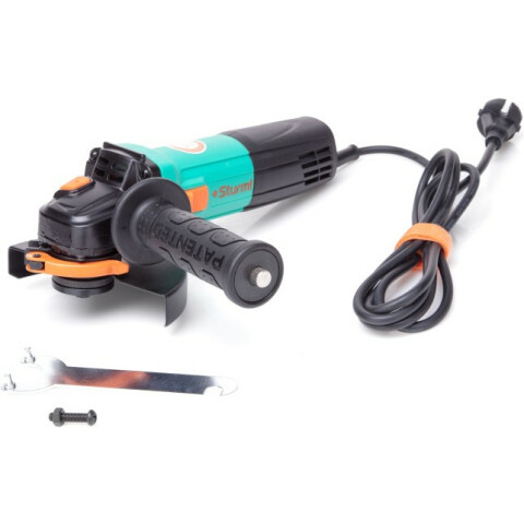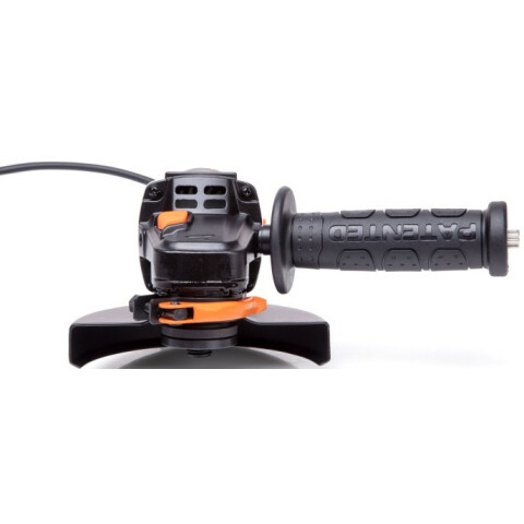 угловая шлифмашина, мощность 1100 Вт, частота вращения диска 10000 об/мин, диаметр диска 125 мм, питание от сети, дополнительная рукоятка