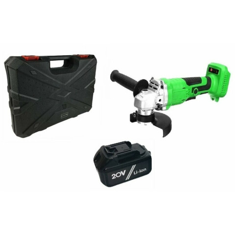 угловая шлифмашина, частота вращения диска 8000 об/мин, диаметр диска 125 мм, питание от аккумулятора, дополнительная рукоятка